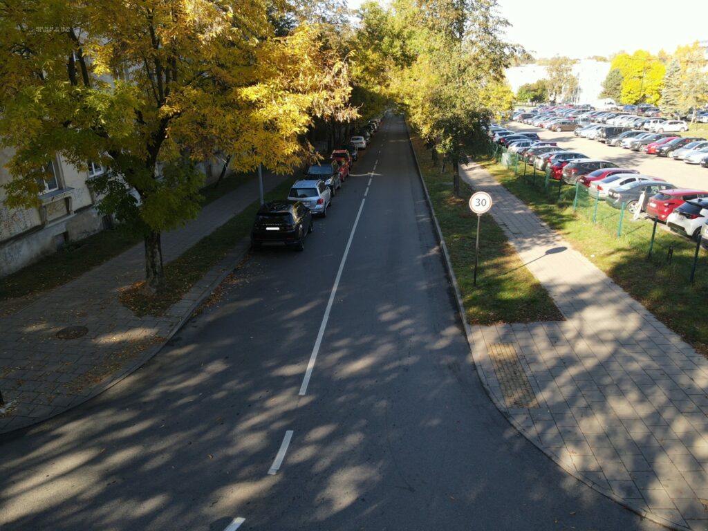 Šioje gatvėje gyventojų ir sveikatos priežiūros įstaigų lankytojų intensyviai parkuojami automobiliai abipus gatvės.