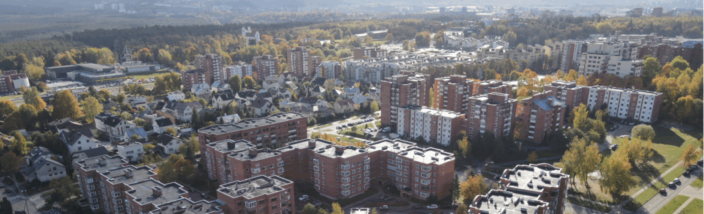 Čia vyrauja gyvenamosios paskirties mažaaukščiai pastatai