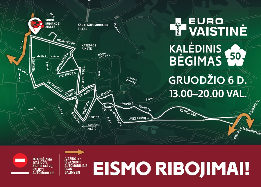 - Pirmąjį gruodžio šeštadienį – tradicinis kalėdinis bėgimas: bus eismo ribojimų
