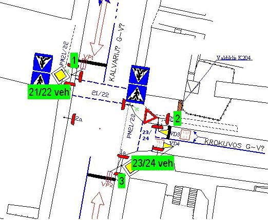 SG21/22 (pažymėta skaičiais 21/22veh žaliam fone) — signalinė grupė 21/22 skirta pėstiesiems,kertantiems Kalvarijų g.