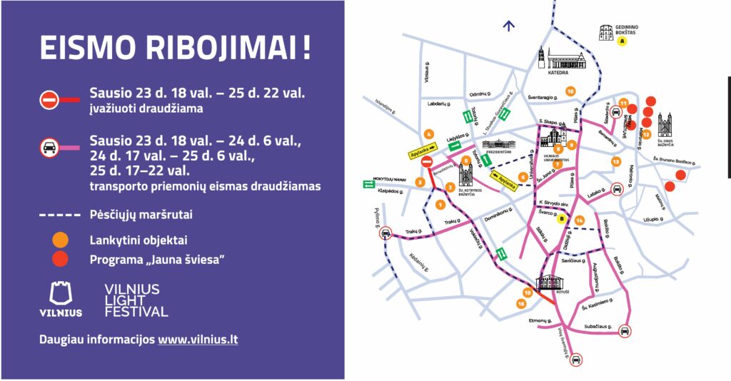 - Vilnius džiugins šviesų festivaliu: bus eismo ribojimų, todėl patogiau keliauti pėsčiomis